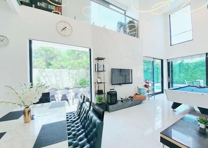 芭提雅市中心4卧豪华泳池别墅/靠近海滩/步行街/Central Festival tilbyder fritidsaktiviteter, herunder en swimmingpool, terrasse-restauranten og en have. Flaskekunst-museet kan besøges i 7 km fra indkvarteringen og Dongtan Strand er 1 km væk.